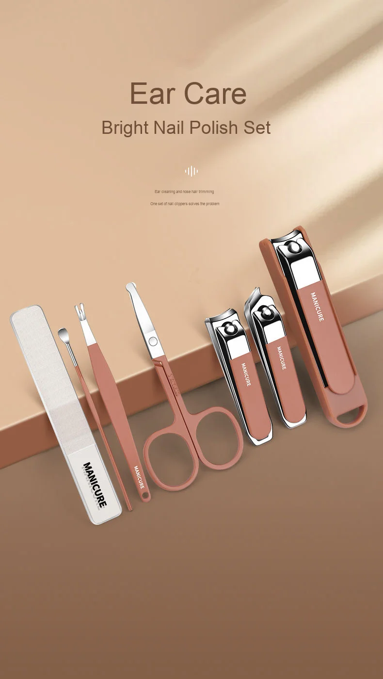 批发专业5合1指甲护理美甲修脚工具套装不锈钢指甲剪个人美容套装